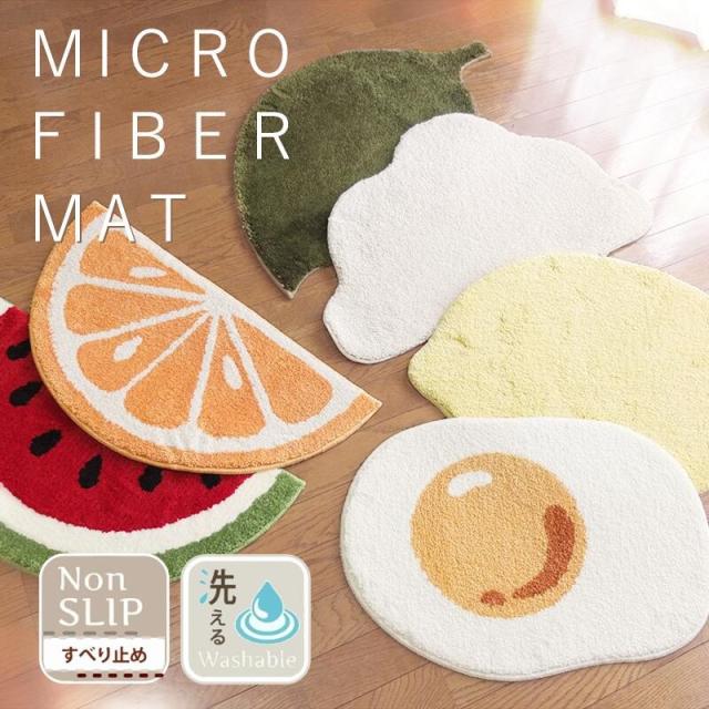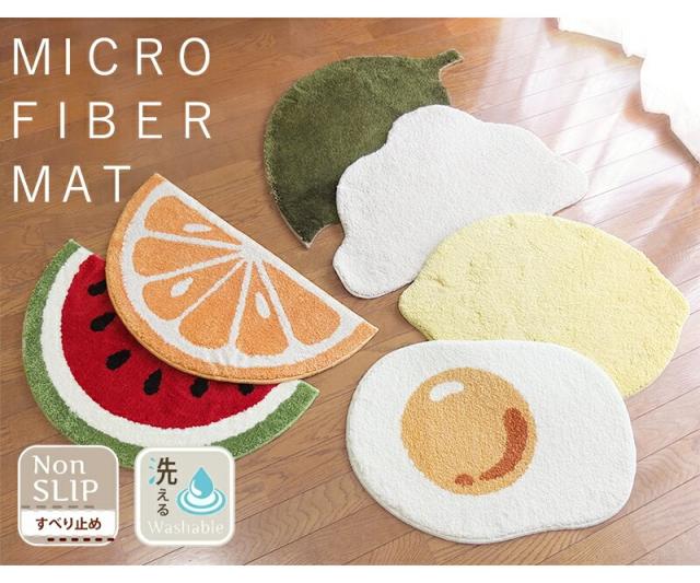 送料無料 玄関マット バスマット おしゃれ かわいい 洗える すべり止め 洗面所 マット 北欧 室内 屋内 マイクロファイバー ウォッシャブル ドアマット くも れもん オレンジ はっぱ めだまやき すいか ホワイト 人気 すべり止め