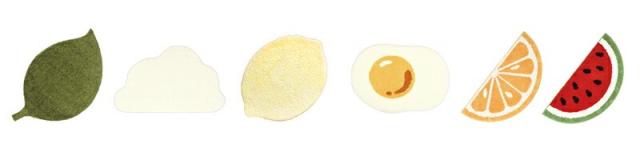 | サイズ | くも、はっぱ:約45×75cm れもん:約45×70cm めだまやき:約40×60cm おれんじ、すいか:約35×70cm |