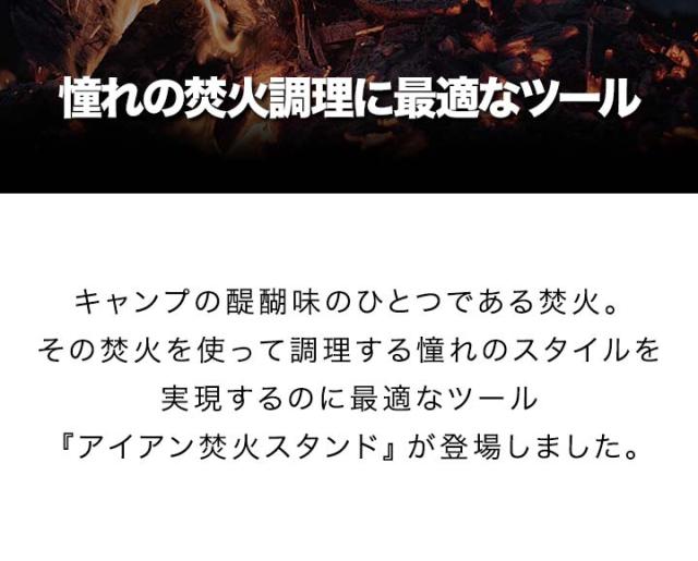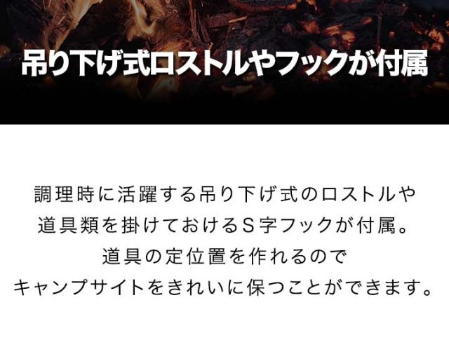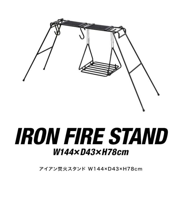 グリルスタンド 焚き火スタンド 幅144cm 吊り下げロストル/フック付セット 耐熱塗装 アウトドアテーブル 五徳 直火 調理台 焚火 網 折りたたみ テーブル 折り畳み 焚き火 キャンプ用品 アイアン 焚火スタンド FIELDOOR 送料無料