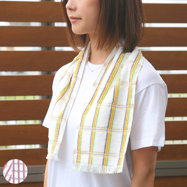冷感タオル カラフルチェック 冷たい タオル ひんやり ( マフラータオル 冷感たおる 接触冷感 チェック Eco de クール 冷感 クールタオル タオルマフラー 熱中症 暑さ 対策 スポーツ アウトドア キャンプ 運動会 室内 )