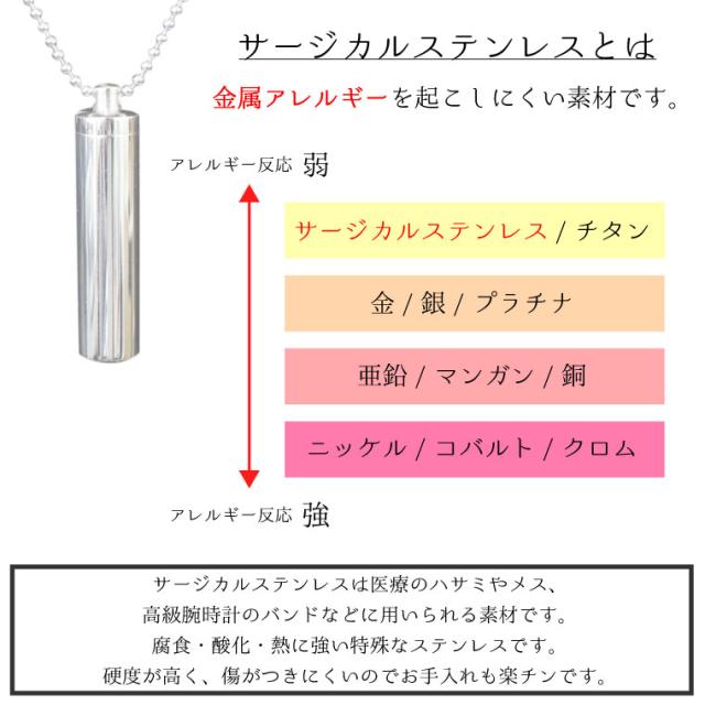 遺骨ペンダント サージカルステンレス 筒型 サイズS ロケットペンダント メモリアルペンダント ボールチェーン ネックレス 遺骨カプセル 遺骨入れ 遺骨 分骨 ミニ骨壷 骨壺 仏具 手元供養 ペット供養にも
