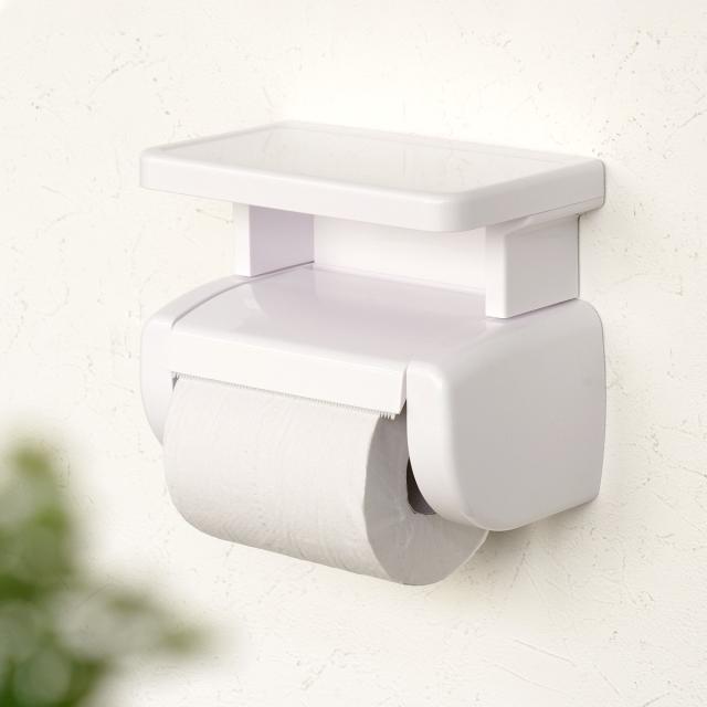 シンプルで使いやすいデザインの棚付きトイレットペーパーホルダーです。フックが動くので、ペーパーが片手で簡単にセット出来ます。ホワイトカラーなので、清潔で明るい空間を演出します。