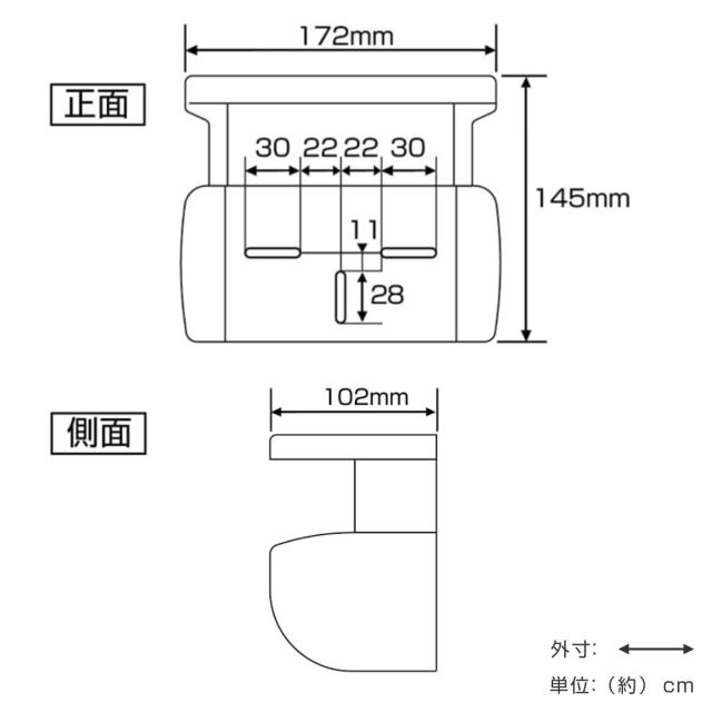 | 備考 | 芯あり・なし兼用 ※ペーパーの外径が12cm以上のトイレットペーパーは使用できません。 ※棚には1kg以上のものは置かないでください。 |