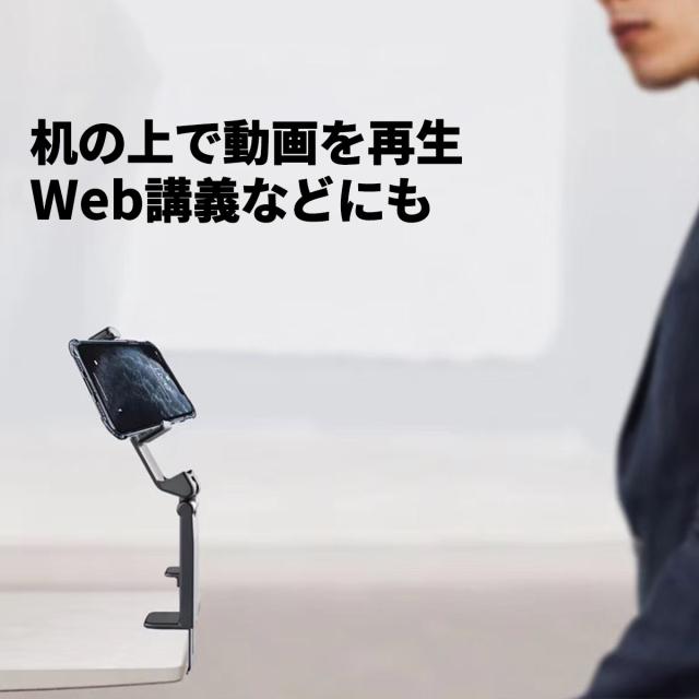 デスクに取り付けて、アタッシュケースに取り付けて、折りたたんでそのままスマホスタンドにも