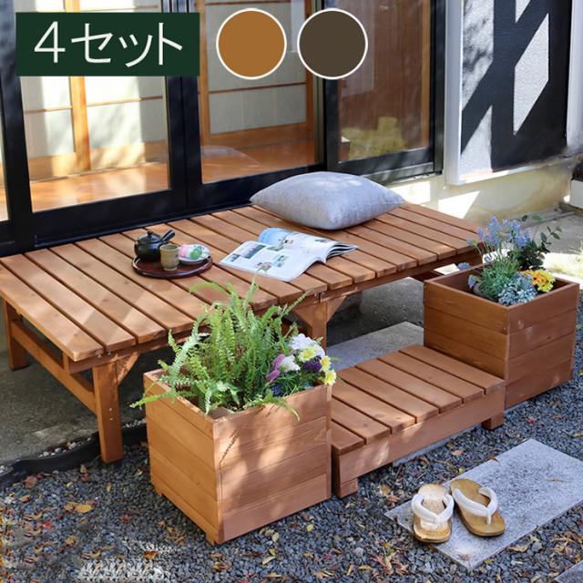 ユニット 縁台 ベンチ hiyori 87×55 DE-8755 ベンチ 縁台 ガーデン ベランダ ガーデニング 台 踏み台 木目調 シンプル(代引不可)【送料