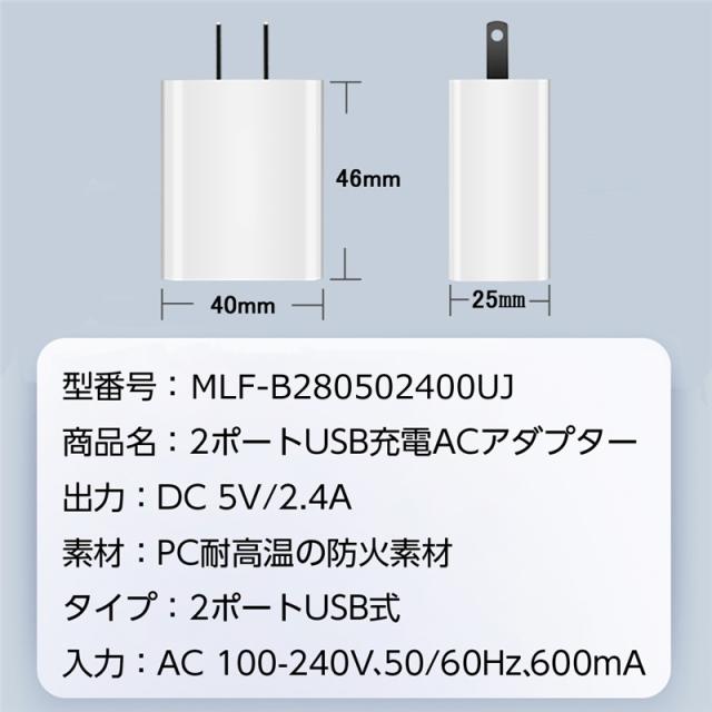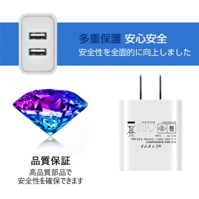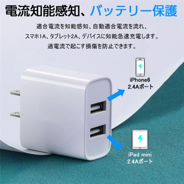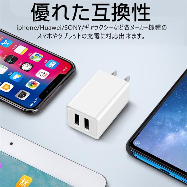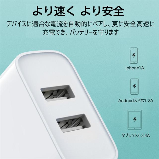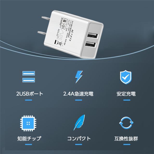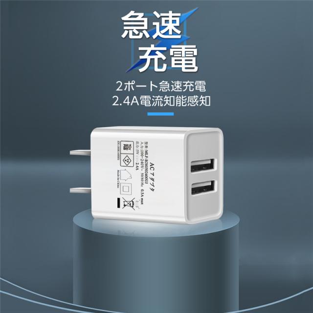 ACアダプター USB充電器 iPhone17シリーズ iPhone17/Air/17pro/17ProMax 2.4A USB2ポート 高速充電 PSE認証 USB電源アダプター スマホ充電器 急速充電 超高出力 IOS/Android対応 【PL保険加入済み製品・安心】