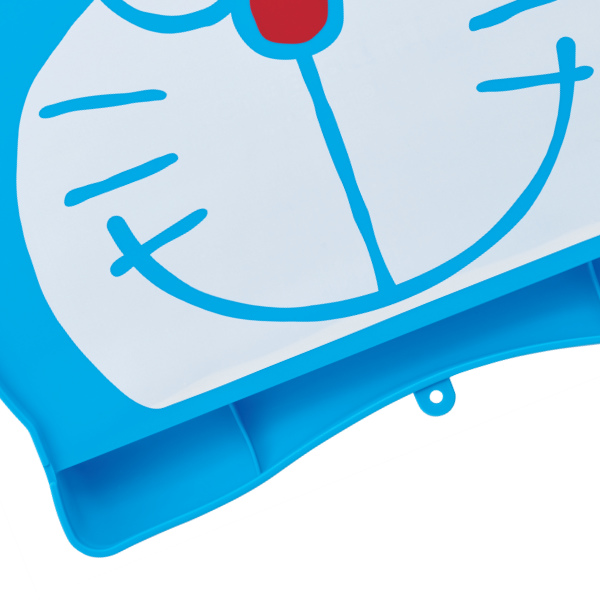 ドラえもんの形をしたお食事マットで毎日楽しく食事ができます。身体にやさしいカーブ形状でテーブルにピタッと密着して滑りにくいです。食べこぼしをキャッチするポケットとまわりにフチが付いているのでお子様がお食事の際にこぼしても安心です。シリコン製で水洗いができ、便利な吊下げ穴も付いています。丸めてコンパクトに収納できます。