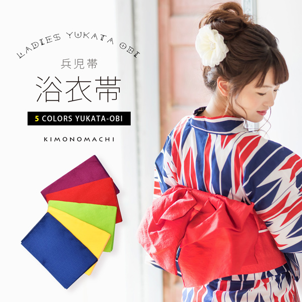 KIMONOMACHI オリジナル レディース 浴衣 帯 兵児帯「イエロー・レッド・パープル・グリーン・ブルー 全5色」日本製【メール便対応可】