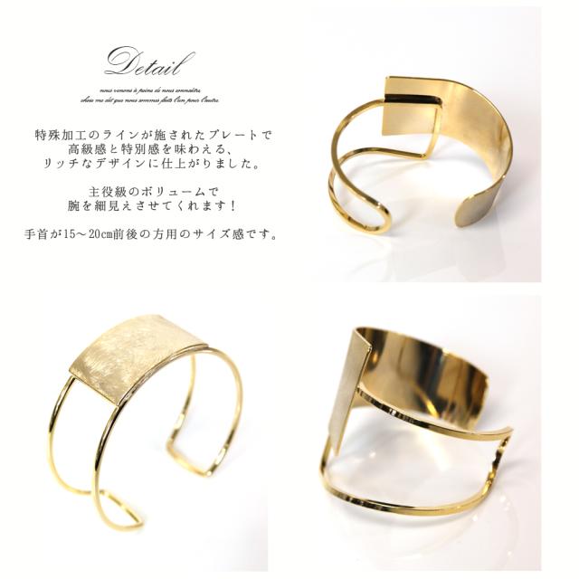 バングル ブレスレット レディース シルバー ゴールド 太め ブランド おしゃれ シンプル 人気 30代 40代 アクセサリー 20代 可愛い かわいい 大人 プレート ボリューム 大きめ 特殊 ライン 加工 ワイド 2種展開 アシンメトリー スクエア 合金 カジュアル 韓国 韓国アクセ