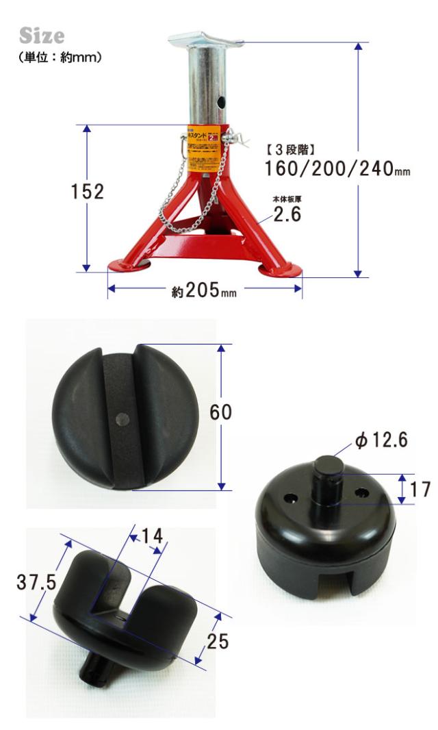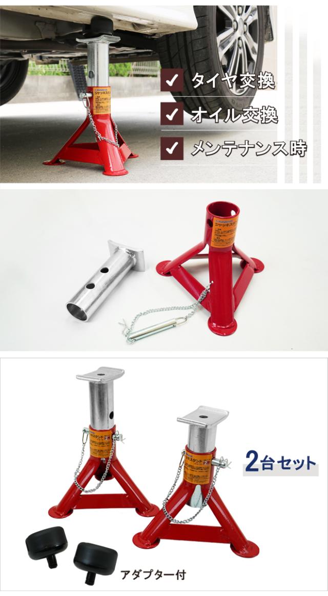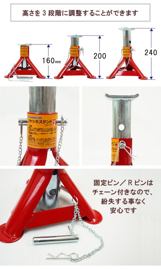 ジャッキスタンド 2トン 2台合計 ショート 2台セット アダプター付 160/200/240mm 2基 馬ジャッキ リジッドラック ジャッキアップ KIKAIYA
