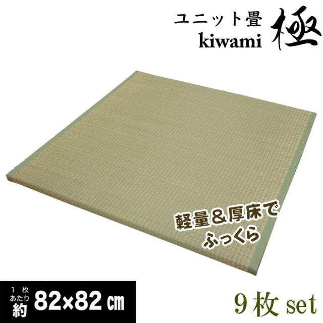 9枚セット:半畳サイズ軽量厚床ふっくらユニット畳「極」 約4.5畳用【不織布貼:スベリ止め加工、発泡エチレンボード、ウレタン入り】