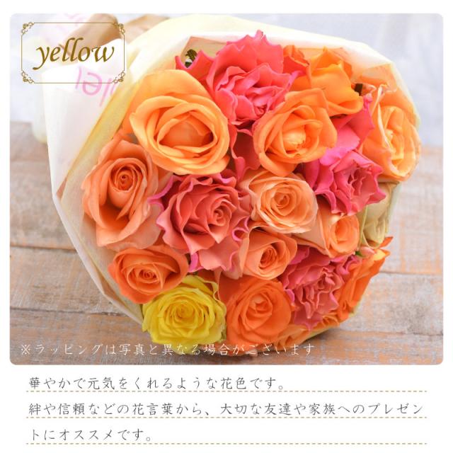 黄色のバラの花束 生花 イエロー オレンジ バラ 送料無料 ギフト プレゼント ホワイトデー 誕生日 卒業 入学 御祝 発表会 記念日 プロポーズ サプライズ 彼女 母 結婚式 お見舞い 司ガーデン