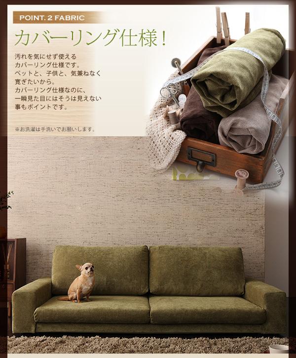 汚れを気にせず使えるカバーリング仕様です。ペットと、子供と、気兼ねなく寛ぎたいから。カバーリング仕様なのに、一瞬見た目にはそうは見えない事もポイントです。 ※お洗濯は手洗いでお願いします。