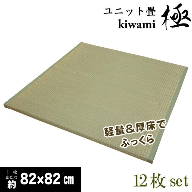 12枚セット:半畳サイズ軽量圧床ふっくらユニット畳「極」 約6畳用【不織布貼:スベリ止め加工、発泡エチレンボード、ウレタン入り】