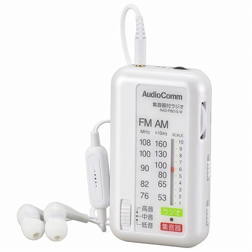 オーム電機 RAD-PB01S-W 集音器付AM FMラジオ 白