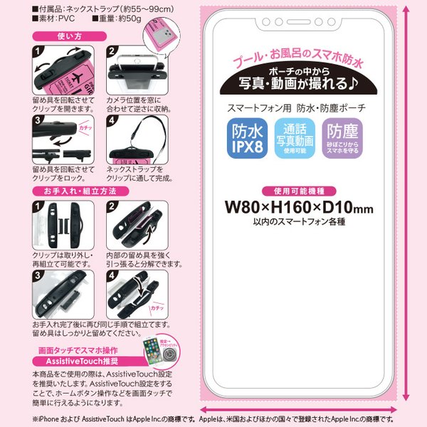 【スマホ用に最適 PINK-latte の防水ポーチ】