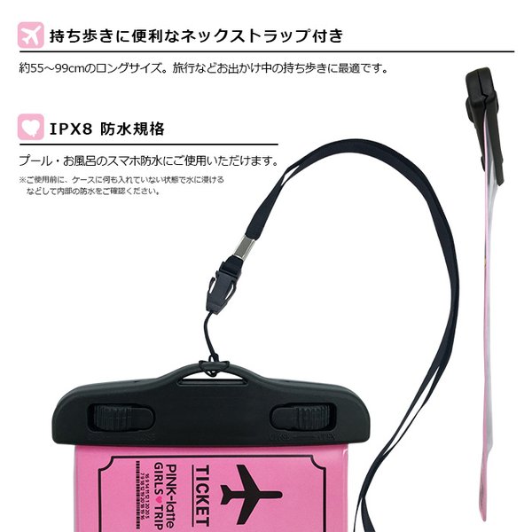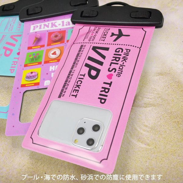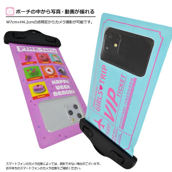 ファッションやトレンドに敏感なティーンズの「今欲しい!」をかなえる原宿ストリート発信ブランド、PINK-latteの、POPでカワイイ防水ポーチ。防水の最高水準の証である「IPX8」を取得。