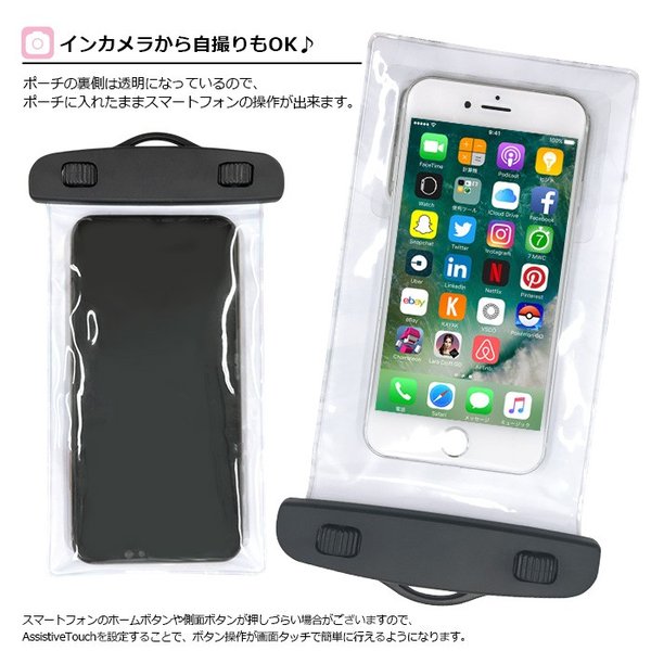 - 防水ポーチ本体サイズ:W:115 H:200 D:15 (mm)