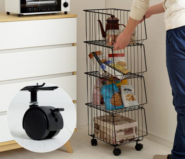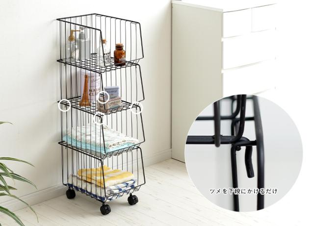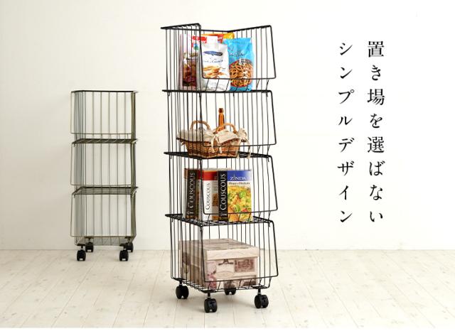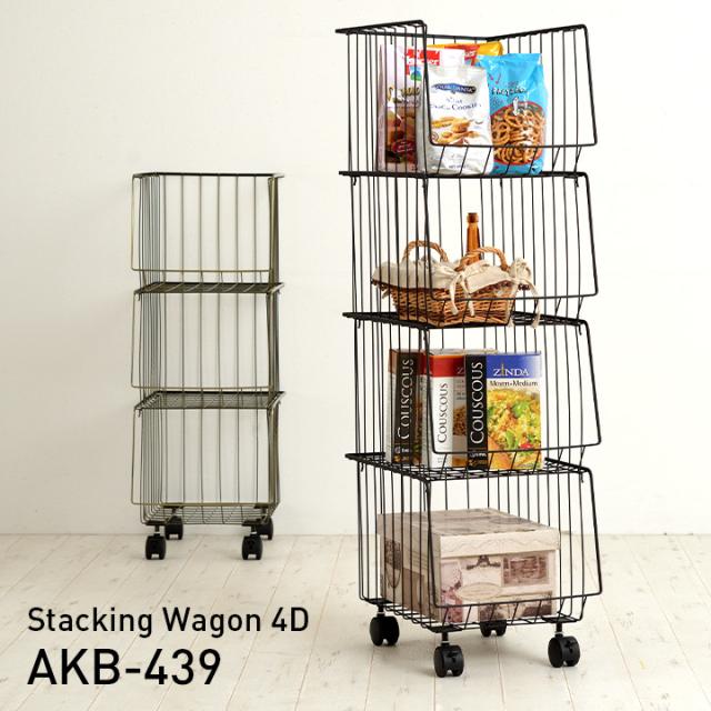 4段 スタッキングラック スタッキングワゴン4D AKB-439 2色対応 四段 スチール 収納家具 キャスター付き 収納 収納ボックス 金属製 コンパクト シンプル デスクサイド キッチン ランドリー バスケット おもちゃ箱 おもちゃ収納