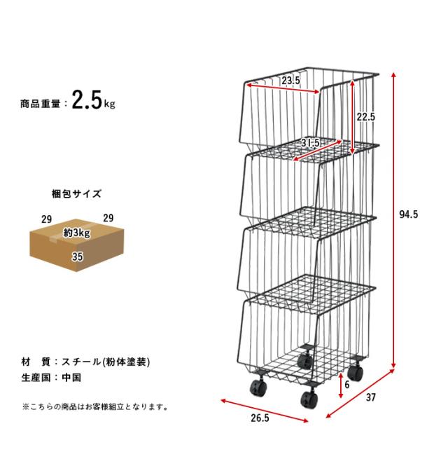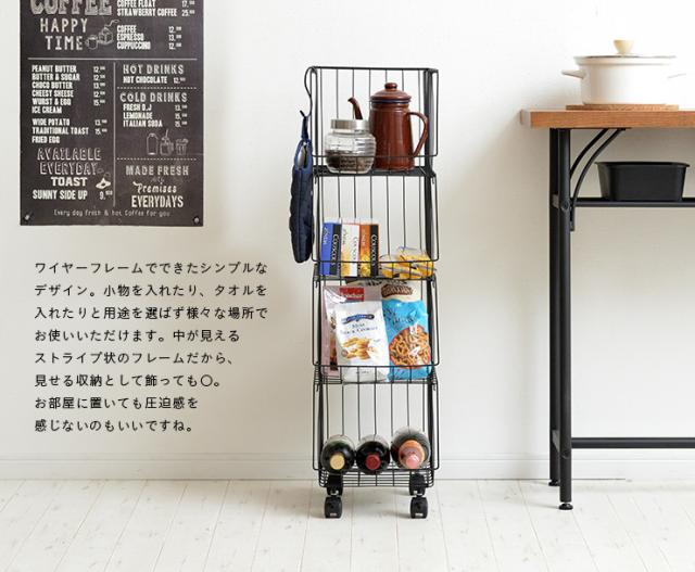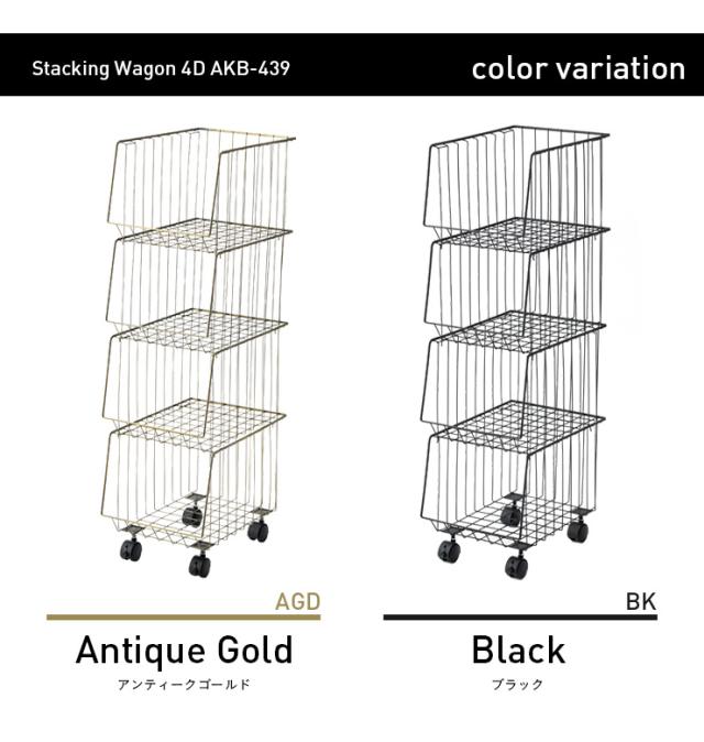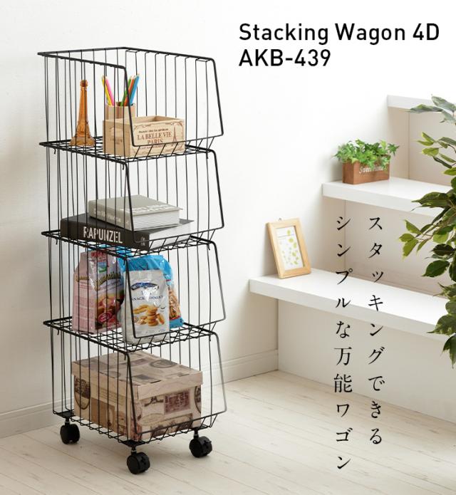 4段 スタッキングラック スタッキングワゴン4D AKB-439 2色対応 四段 スチール 収納家具 キャスター付き 収納 収納ボックス 金属製 コンパクト シンプル デスクサイド キッチン ランドリー バスケット おもちゃ箱 おもちゃ収納
