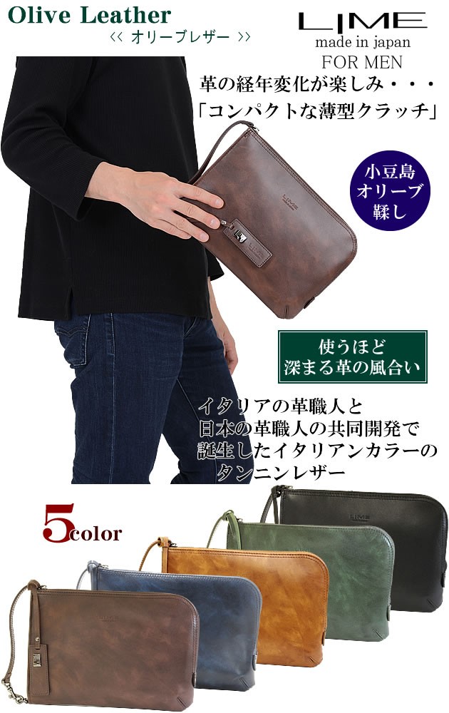 セカンドバッグ メンズ 本革 クラッチバッグ レザー 牛革 革 高級 男性用 日本製 ライム オリーブレザー L9035 プレゼント 父の日 敬老の日 ギフト バッグ 鞄 かばん 小さめ 小さい ミニ 薄型 クラッチ おしゃれ オシャレ 使いやすい 通勤 仕事 旅行 ブランド