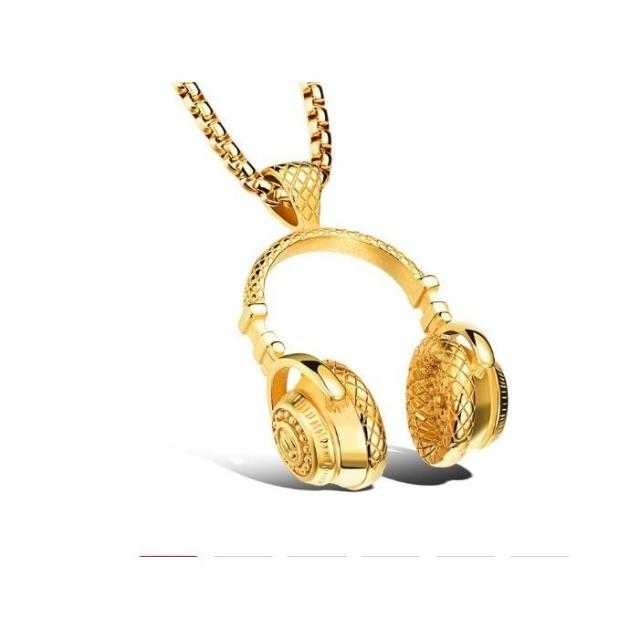ネックレス チェーン 60cm 18k ゴールドメッキ ヘッドフォン ヒップホップ ロック ジュエリー