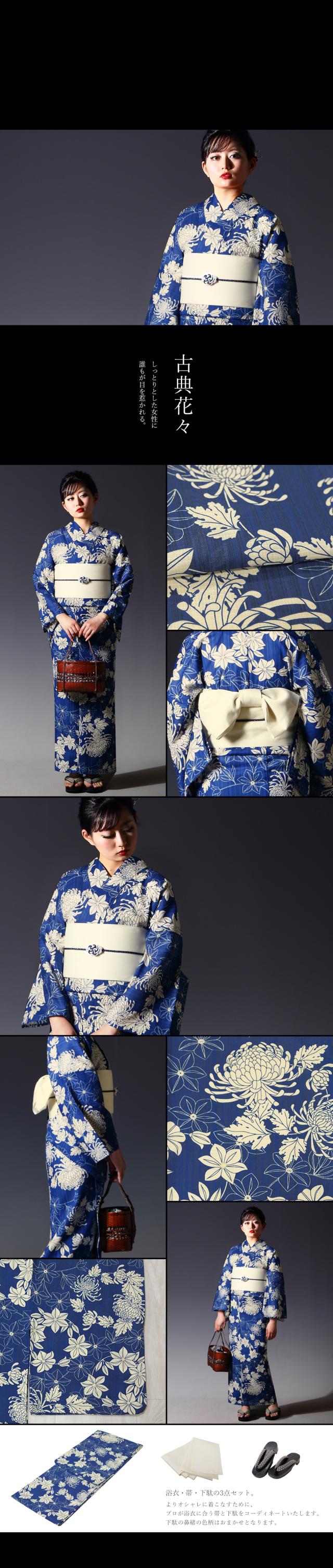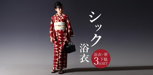 こちらの商品は、浴衣・帯・下駄の3点セットです。セット内容の一部変更や、値引きは承ることができません。