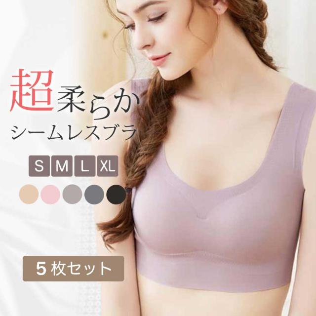 超柔らか シームレス ブラジャー 5枚セット 背中レース シームレスブラ ブラジャー ナイトブラ ノンワイヤー 下着 ナイトブラ 育乳 横垂れ 型崩れ防止 ヨガブラ バストアップ 脇肉