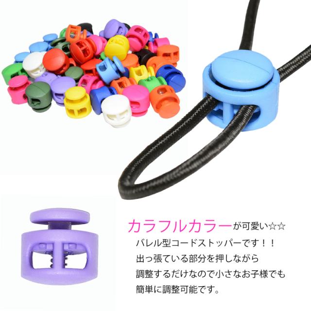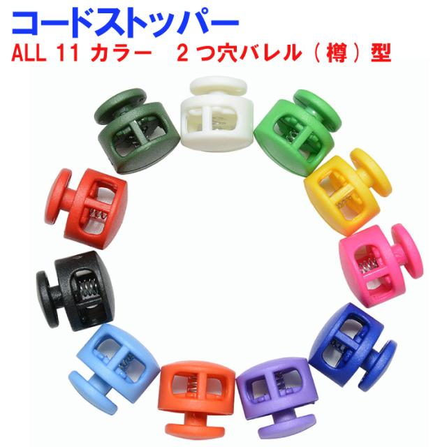 【メール便対応】コードストッパー -03 バレル(樽)型 2本通し型 ハンドメイド パーツ 手芸素材 コードロックエンド ループエンド 多用途【手作り プラスチック オリジナル ハーネス リペア 荷物 補修 修理 材料 アイテム 】┃