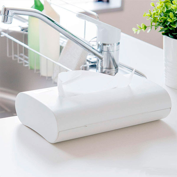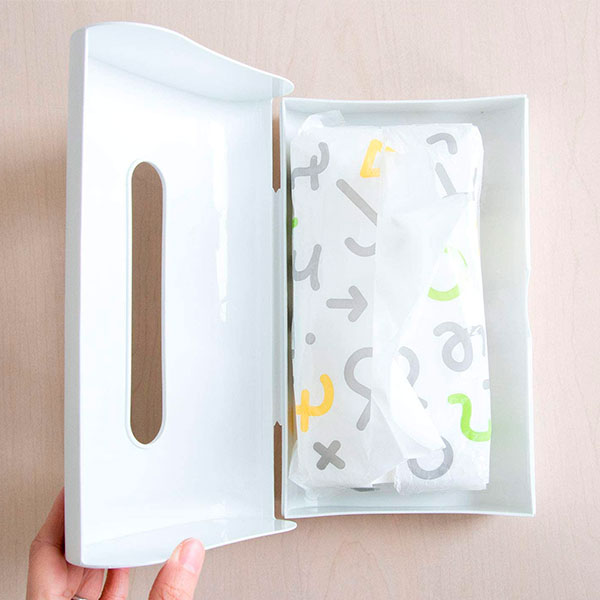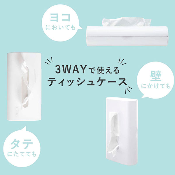 横でも縦に置いても、壁にも掛けて使える3WAY使いのティッシュケースです。