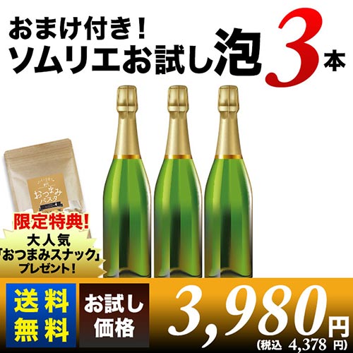 スパークリングワイン セット おつまみスナック付き!ソムリエお試しスパークリングワインセット(泡3本) 送料無料