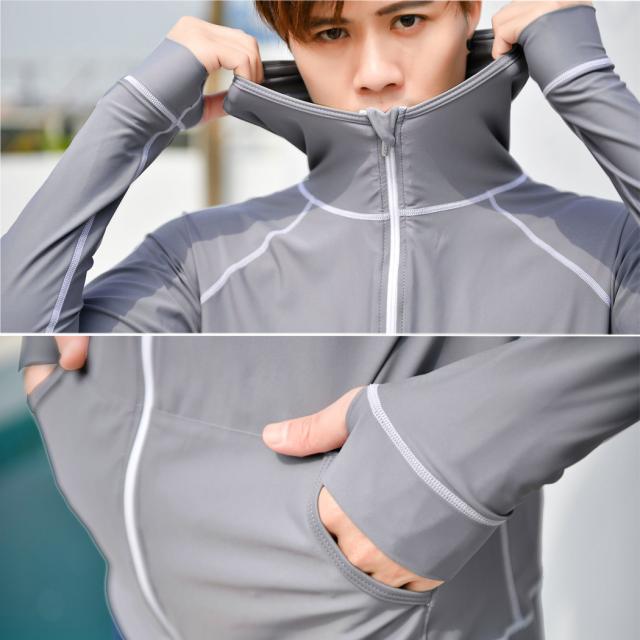 即納 ラッシュガード メンズ 長袖 水着素材 トップス スタイリッシュ カジュアル シンプル スポーティー 水陸両用 お洒落 紫外線対策 日焼け対策 虫刺され カバーアップ ジム マリンスポーツ 夏 海 ビーチ プール 旅行 レジャー スポーツ 運動 ランニング 暑さ対策_b