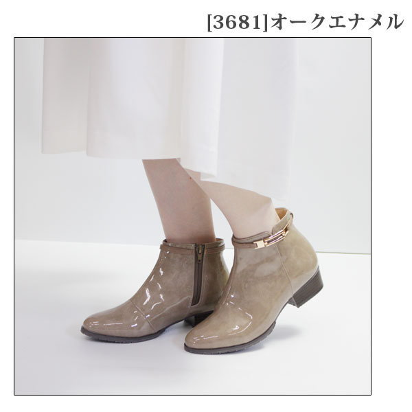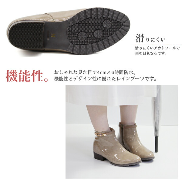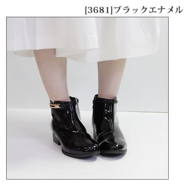 ブーツ レディース 防水 レインブーツ 長靴 シュートブーツ ブーティ 黒 ブラック ベージュ 雨 軽量 おしゃれ レインシューズ ファスナー 防滑 抗菌 防臭 ローヒール エナメル 通勤 通学 R-PREMIUM 556-3681