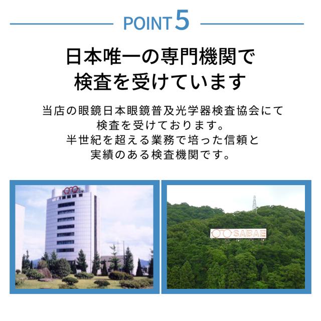 ・日本唯一の検査機関、日本メガネ普及光学器検査協会にて検査を受けています。