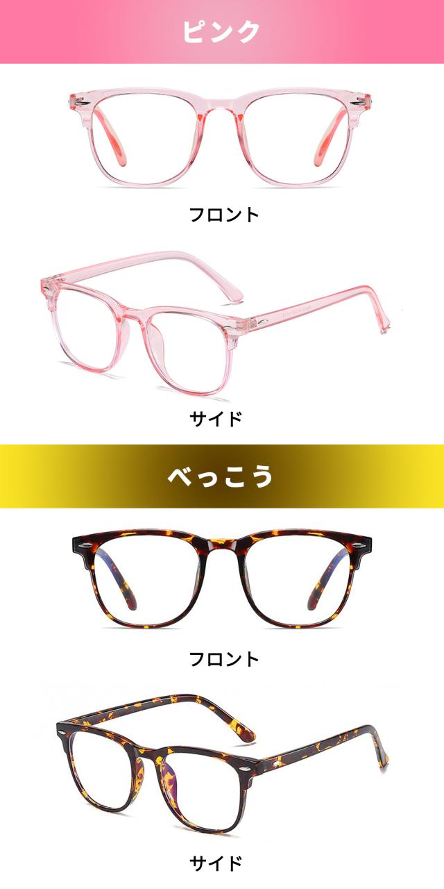 ブラック、マットブラック、ブラウン、ピンク、べっこう