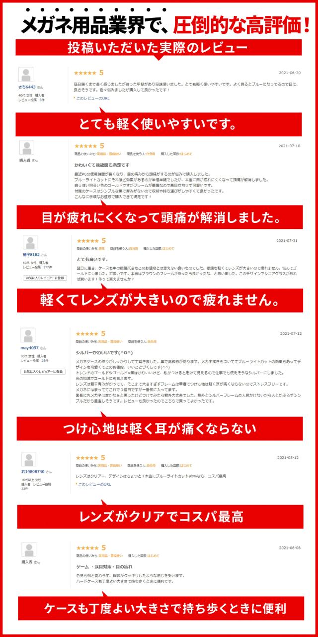 - 日頃からパソコンやスマホばかりを観ている息子の為に購入しました。 効果は実感しにくいみたいですが、これから先の目の為に掛け続けて欲しいです。
