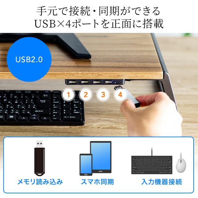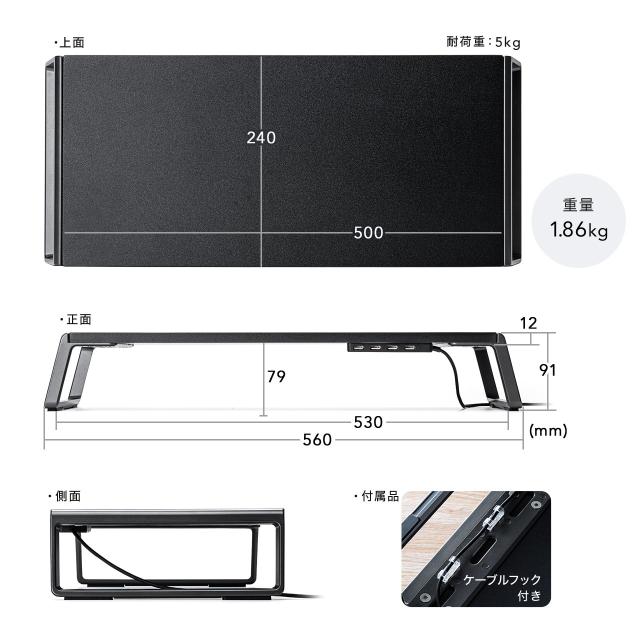 モニター台 USBハブ付き USB A×4 USB2.0 幅50cm 机上台 モニタースタンド [100-MR170]