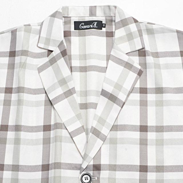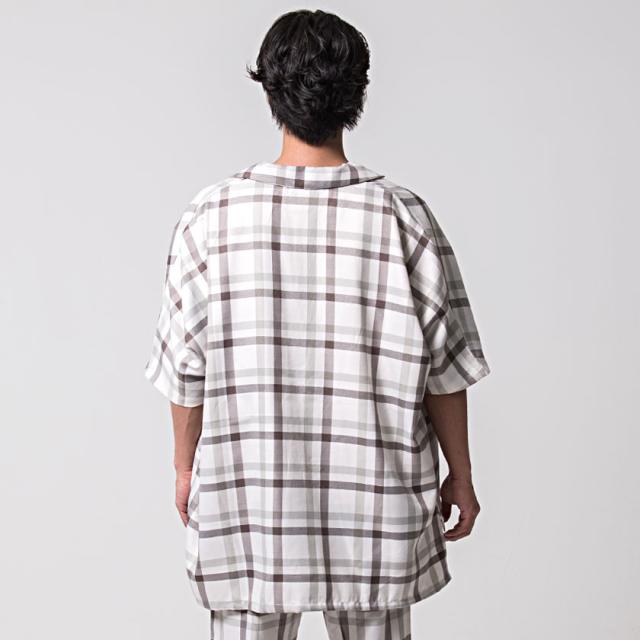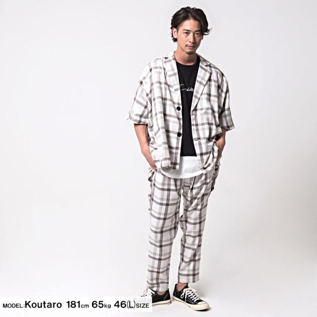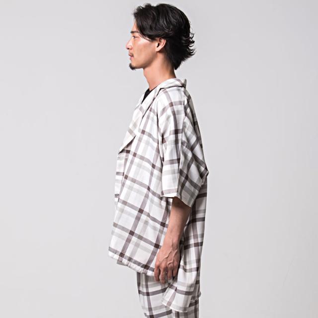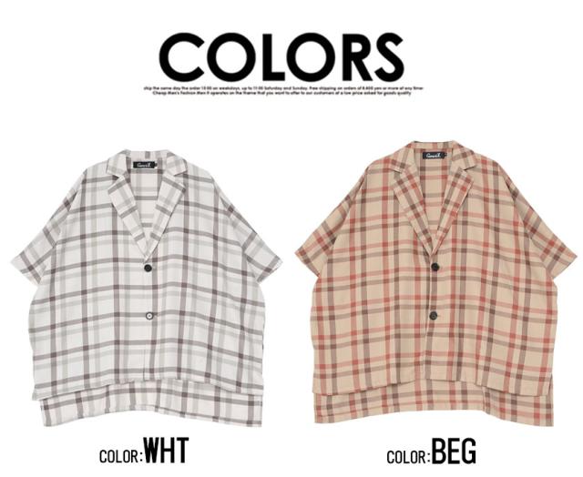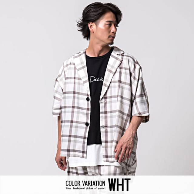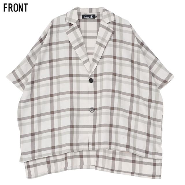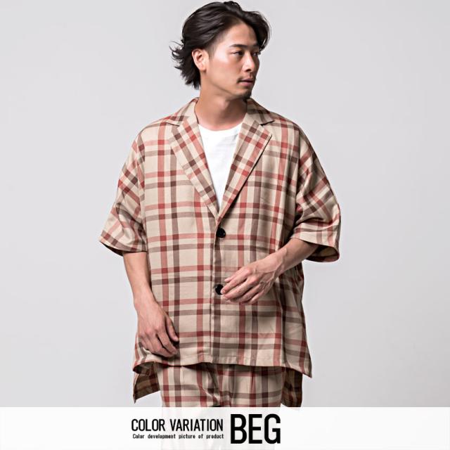 シャツジャケット メンズ CavariA キャバリア チェック柄ビッグシルエットシャツジャケット 即日発送 トップス 羽織り 5分袖 ラペル 開襟 大きいサイズ セットアップ可 ホワイト ベージュ M L レトロ BITTER系 ビター系 春 夏 [CARE20-39]