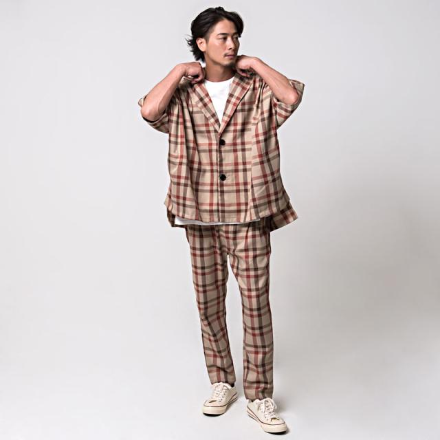 同素材のパンツを合わせてセットアップの着こなしもお楽しみいただけます。