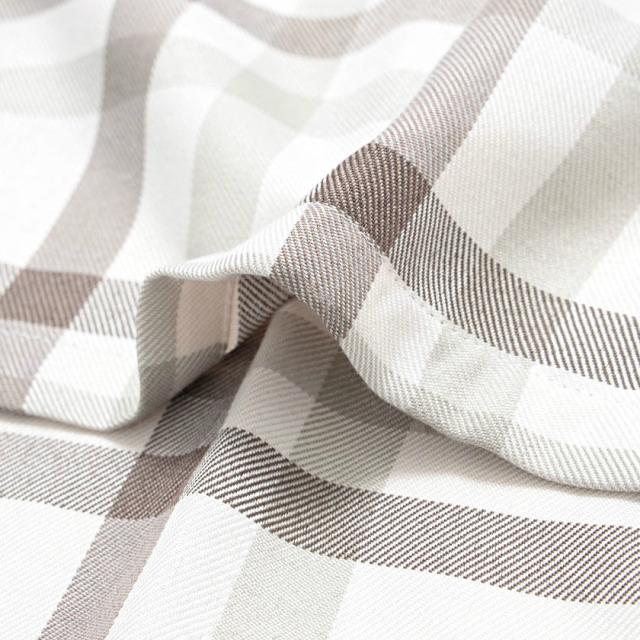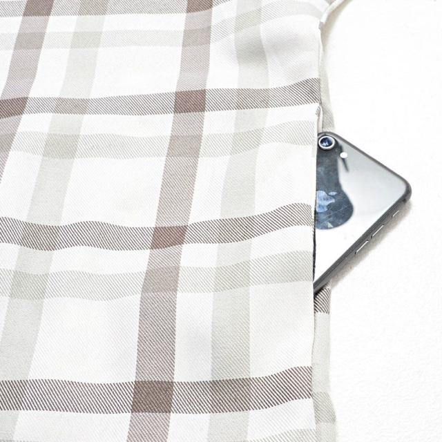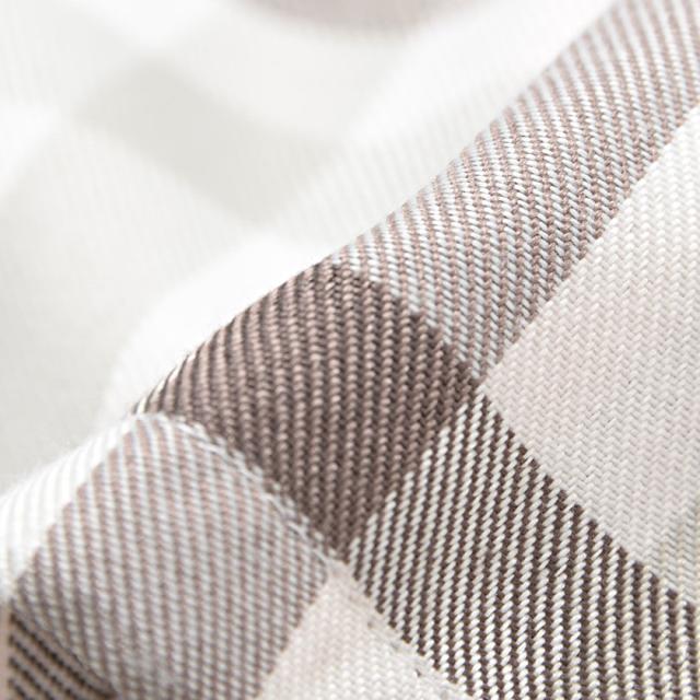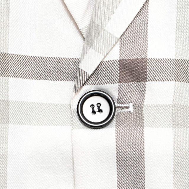襟もとは今年のトレンドでもあるラペル襟を採用し全面にチェック柄を施した存在感のある一着。