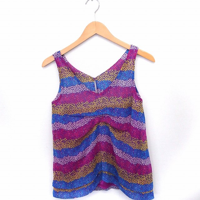 【中古】ロデオクラウンズ Rodeo Crowns シャツ ブラウス 花柄 ドレープ Vネック ノースリーブ S ピンク ブルー 青 /FT