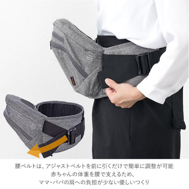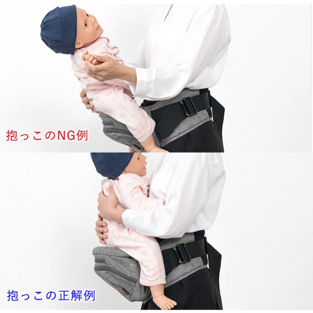 | 注意点 | ※対象月齢:腰すわり(7ヶ月ごろ〜)体重約20kgまで(※パーツによって使用月齢が変化します。) ※装着の際はお子さまを必ず手で支えてください。ヒップシート座面のみで使用の場合は必ず両手で支えてください。 ※使用する前に、フレームが完全に開いていることを確認してからお子さまを乗せてください。 ※お子さまの乗せ降ろしは安全な場所で行ってください。 ※お子さまの状態に注意しながら使用してください。のけぞったり、姿勢が安定しない場合は、使用を中止してください。 ※使用の際は、お子さまの気道をふさぐことがないよう注意してください。 ※各部にあるバックル・ファスナー・面ファスナーが確実に留まっていることを確認してください。 ※各部にあるベルト・ストラップの長さをお子さまや使用者に合わせて調節してください。 ※製品にほつれやキズ・破れがあった際、またはバックル等が破損した際は使用しないでください。 ※使用者の視界が妨げられない範囲でご使用ください。 ※長時間抱っこをする場合は使用者の肩や腰の負担、締め付けによる身体への負担にご注意ください。 ※使用中に前かがみになったり身体を傾けたりするとお子さまが落下する恐れがありますので、必ず両手で支えてください。 ※洗濯の際はヒップシートのフレームやアジャストクッションをすべて取り出し、ネットに入れて洗濯してください。 ※ほかの物と分け、弱水流で水洗いしてください。 ※塩素・漂白剤・アイロン・乾燥機は使用しないでください。 ※カメラやモニターの性質により、画像と実物の色の違いがある場合がございますのでご理解願います。 |