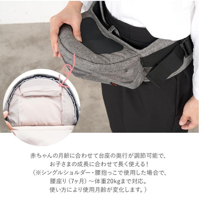 | サイズ | ・ヒップシート [縦]約16cm [横]約23cm [厚み]約13cm [ウエストサイズ]約65cm〜約100cm(調節可能) [ショルダーベルト]約84cm〜約144cm(調節可能) ※サイズは当店平置き実寸サイズです。実際の商品とは多少の誤差が生じる場合がございます。あらかじめご了承ください。 |
