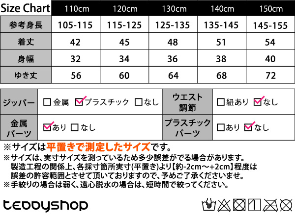 製造工程の関係上、各採寸箇所実寸(平置き)より【約-2cm〜+2cm】程度は