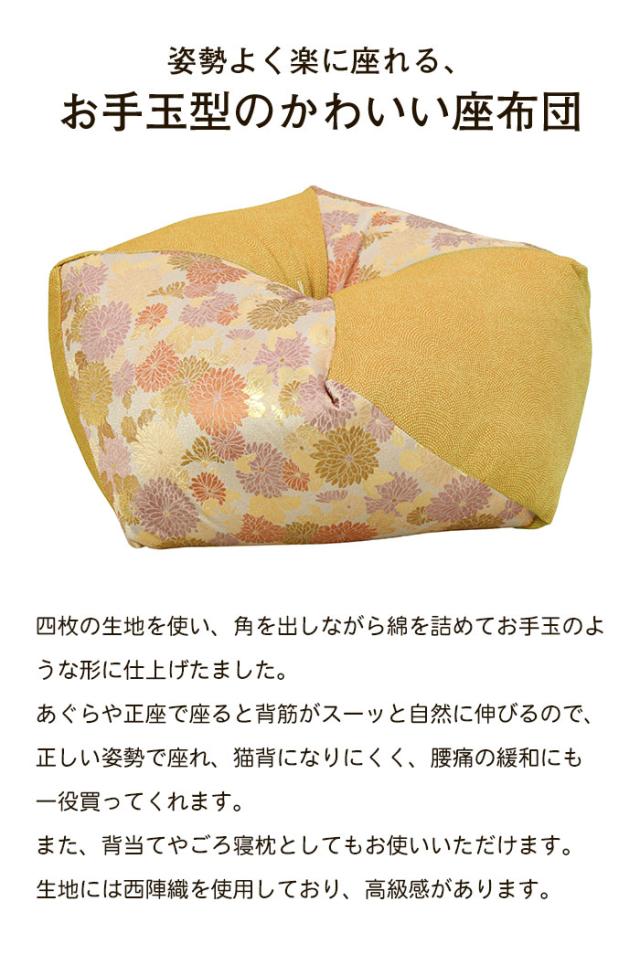 座布団 ざぶとん 正座 クッション お手玉型座布団 姿勢 お手玉 おしゃれ かわいい 和室 旅館 正座クッション 昼寝枕 背あて 背当て まくら 枕 ごろ寝 手作り 国産 日本製 安心 西陣織 高級感 贈り物 プレゼント 敬老の日 母の日