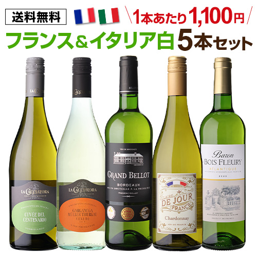 1本あたり1,100円(税込) 送料無料 ワインセット フランス&イタリア 白ワイン5本セット 22弾 750ml ボルドー 金賞 浜運