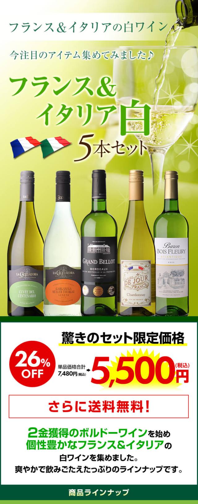 【フランス&イタリア 白ワイン5本セット 第22弾 内容】