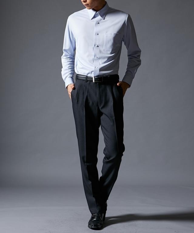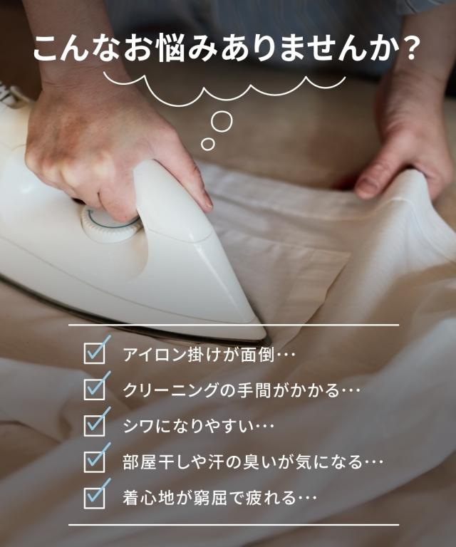 しなやかに伸びる生地を使用し、着る人もラクラク、圧倒的な形態安定性のノンアイロン仕様で洗う人もラクラクなワイシャツです。