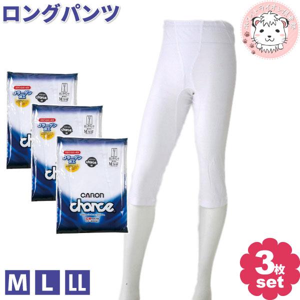 キャロンチャンス ロングパンツ 3枚セット コラーゲン加工 M/L/LL | ステテコ ニーレングス ズボン下 ひざ下丈 メンズ 綿100% フライス 無地 CARON chance