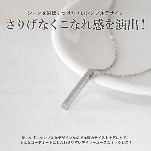 ネックレス メンズ ステンレス 刻印 金属アレルギー対応 つけっぱなしダイヤモンド スティック シンプル 大人 ペンダント スティールシルバーカラー サージカルステンレス 316L ノンアレルギー lstn020st